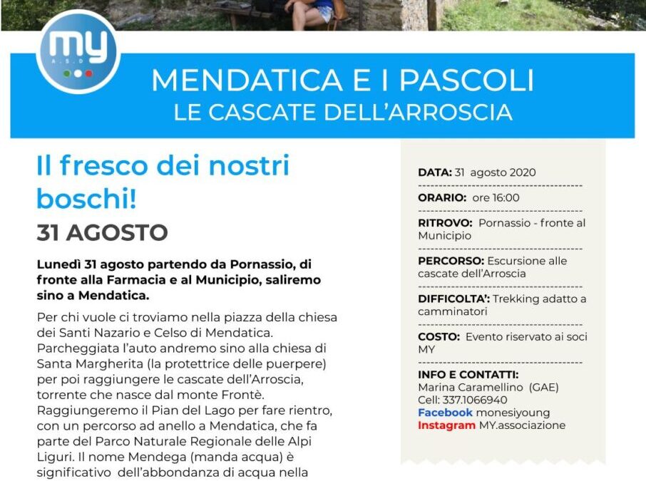 Lunedì 31 agosto l’Associazione Monesi Young propone un’escursione adatta a tutti nel fresco dei boschi di Pornassio e Mendatica, sino alle Cascate dell’Arroscia.
